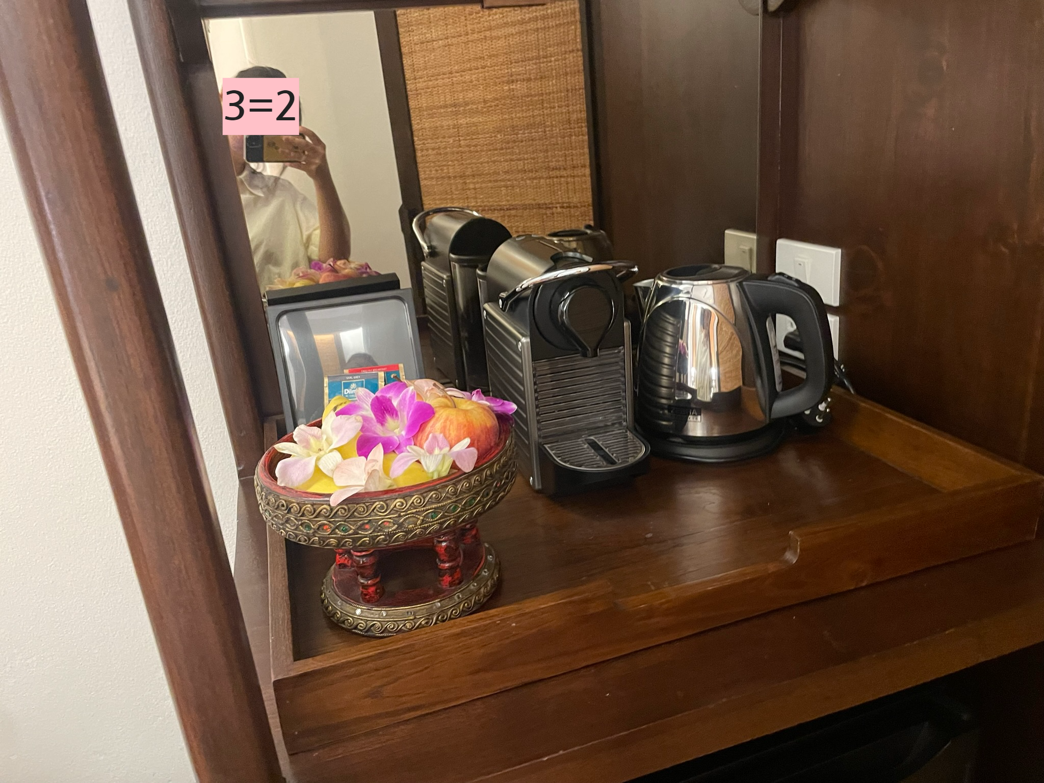슈페리어룸과 마찬가지로 커피와 차, 커피머신, 웰컴 과일들이 준비되어 있고요~