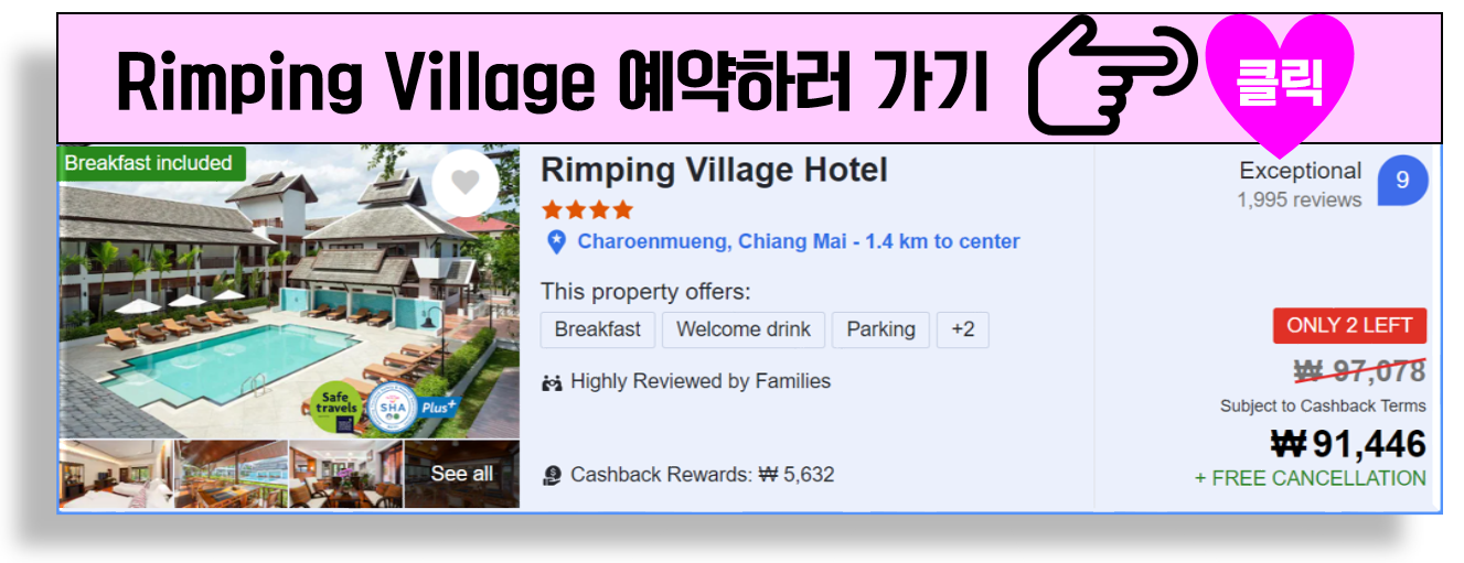 ▶ 숙소 명: 림핑 빌리지 (숙소 이름을 누르면 구글맵으로 들어가요)